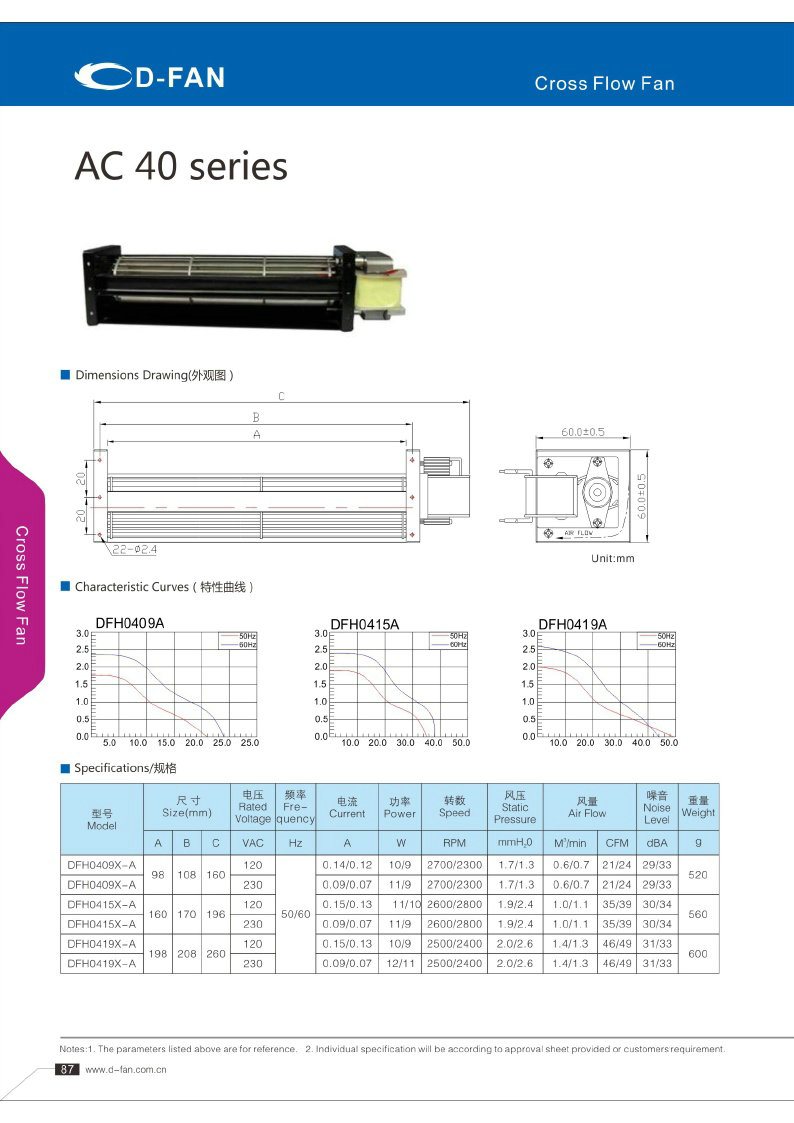 AC FAN橫流風扇040參數(shù)